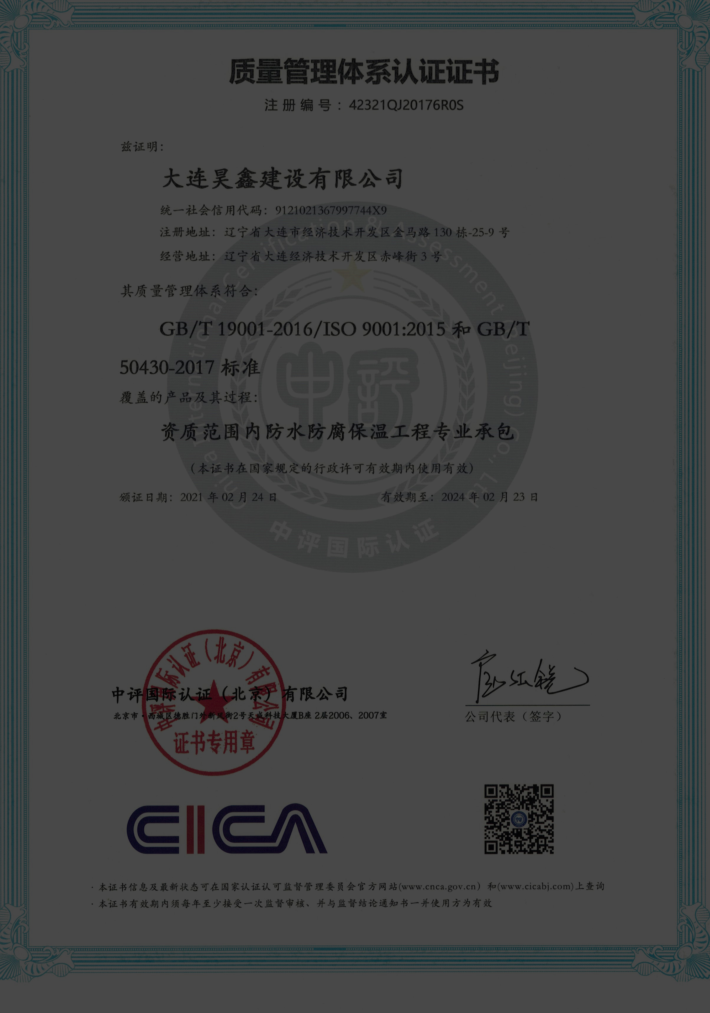 大連昊鑫建設(shè)有限公司珠海分公司。