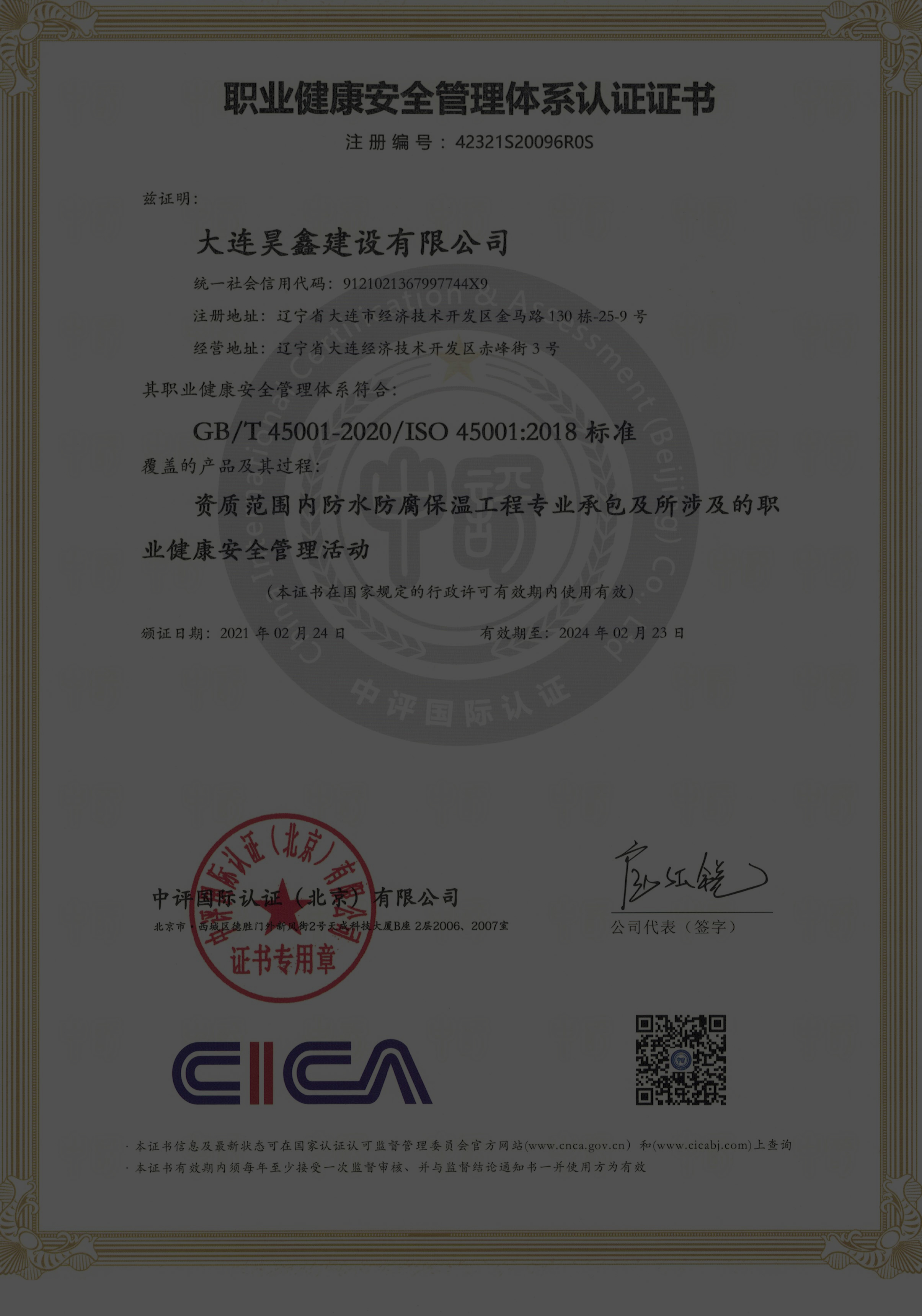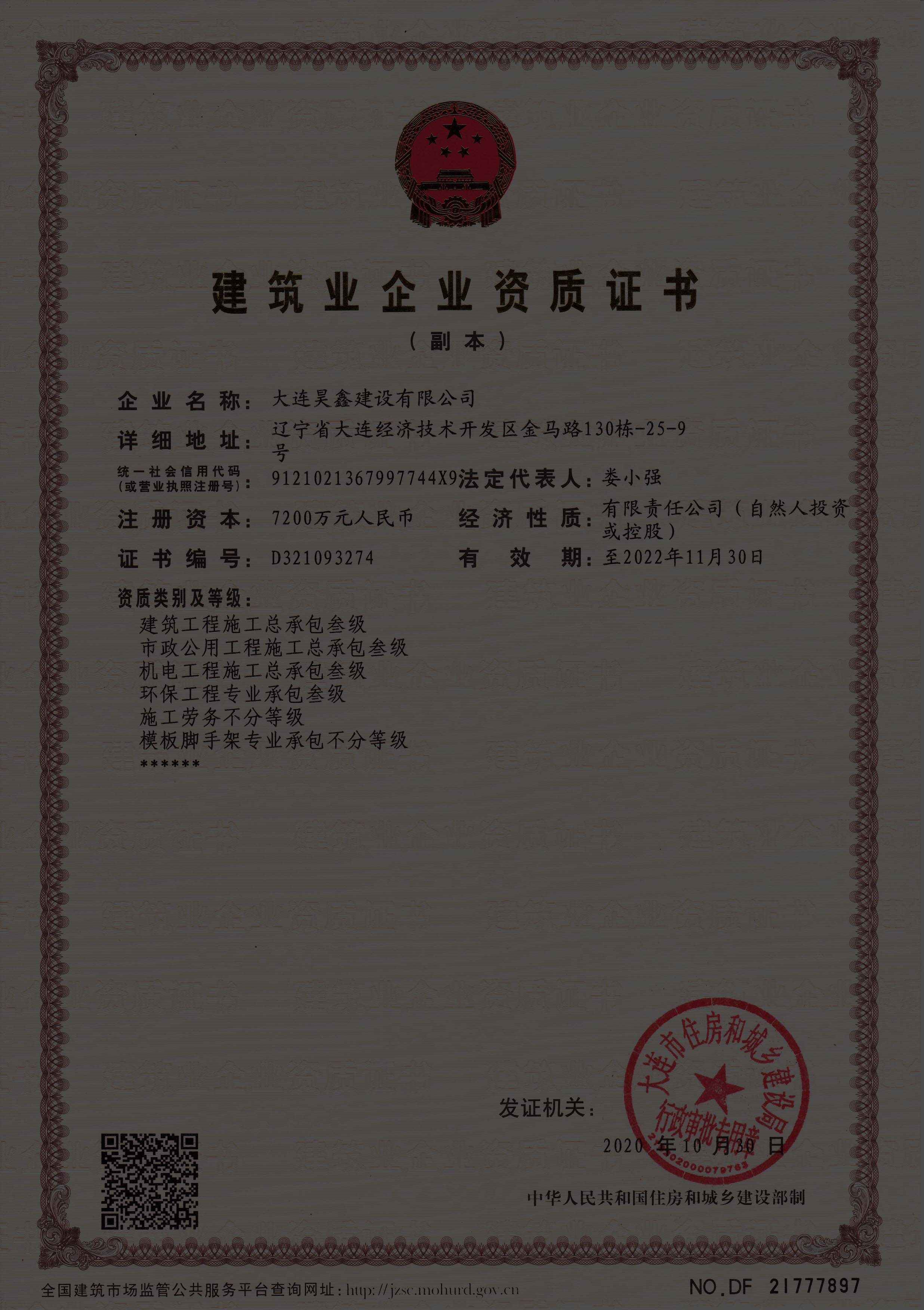 更名大連昊鑫建設(shè)有限公司